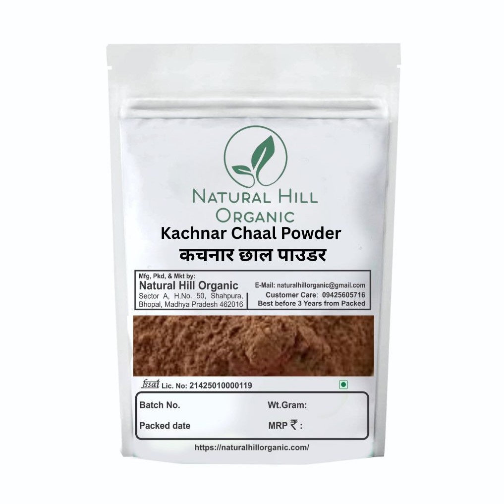 Natural Hill Organic Kachnar Chaal Powder is prepared from carefully selected Kachnar tree bark and processed into a fine herbal powder. It is traditionally used in Ayurveda as a raw herbal ingredient and is suitable for inclusion in routine herbal preparations under professional guidance.
