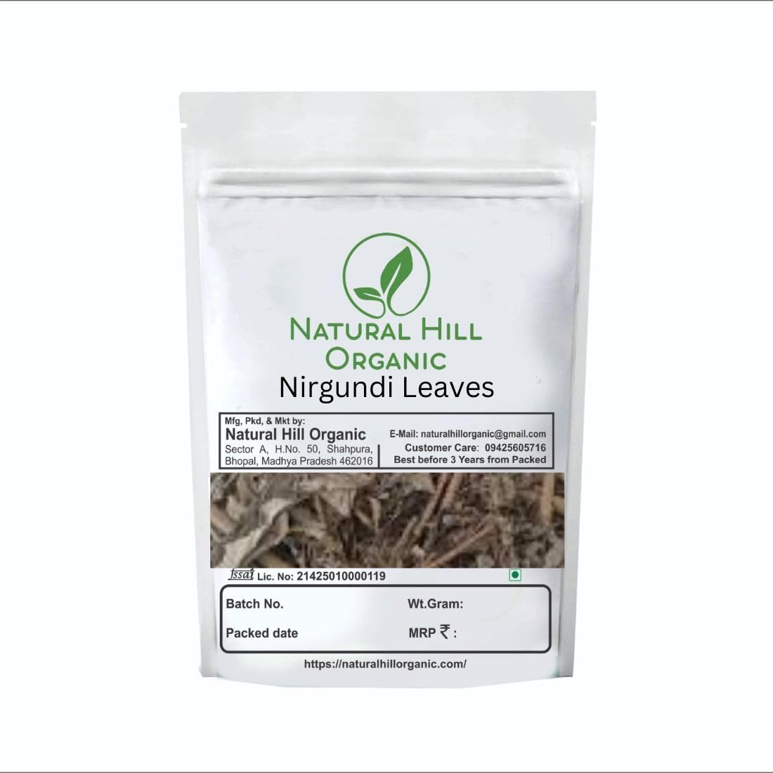 Natural Hill Organic Nirgundi Leaves are carefully selected, cleaned and shade-dried leaves prepared using standard handling and drying practices. These leaves are traditionally used in herbal preparations and general lifestyle routines. The product is suitable for traditional and general use without any medicinal or therapeutic claims.