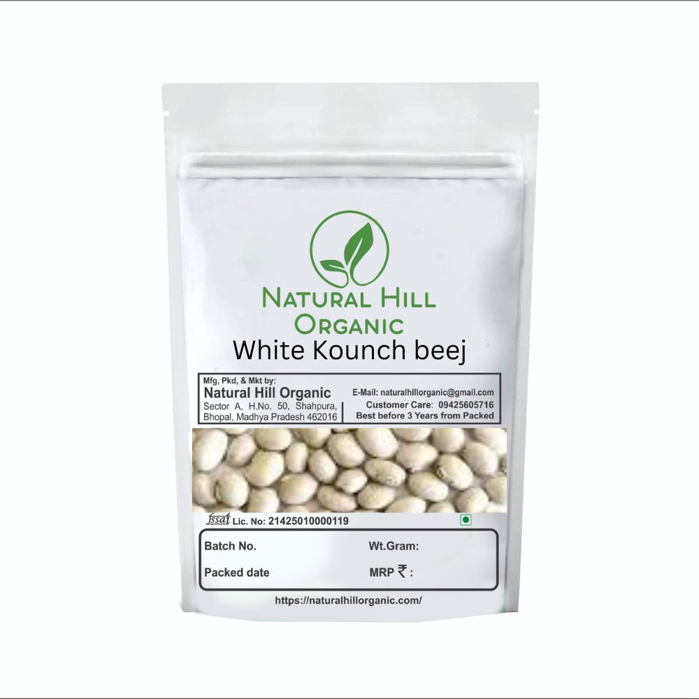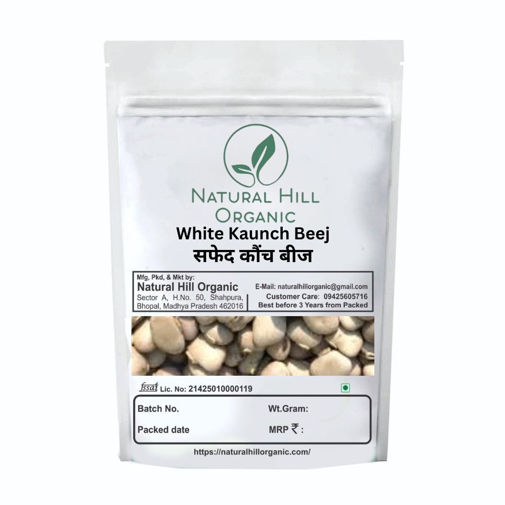 Natural Hill Organic White Kaunch Beej are carefully selected and cleaned seeds used traditionally in Ayurvedic practices. These seeds are commonly included in classical herbal preparations and are suitable for routine herbal use under professional guidance.